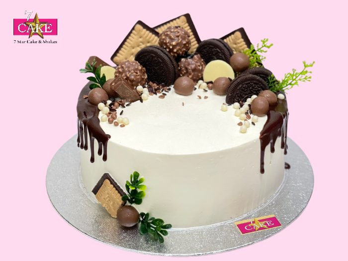 Enjoy our delicious mango cake made with soft victoria sponge layered with mango flavoured fresh cream. Decorated with top class sweet cream,glaze and fresh fruits.